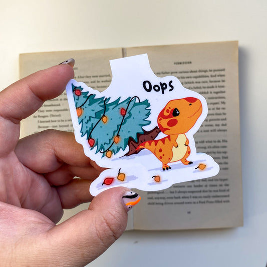 Magnetic Bookmark - Ty at Christmas - Kawaii Dinosaur